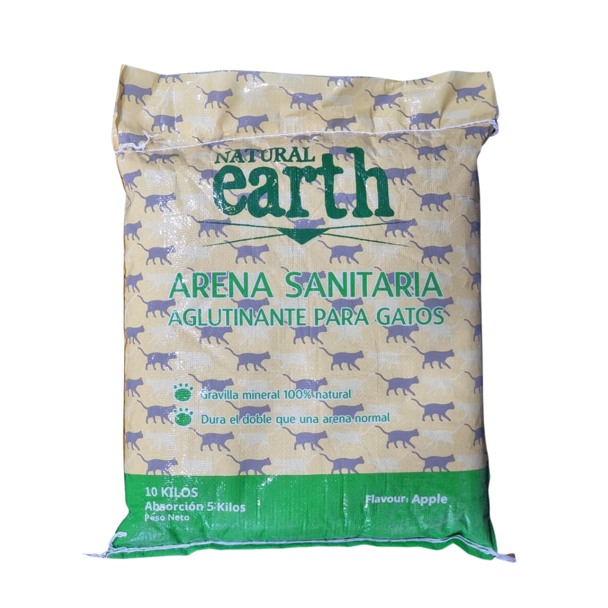 La Arena Sanitaria Natural Earth, tiene una mayor absorción de líquidos, destacando su aglomeración al instante y elimina las bacterias que generan el mal olor.